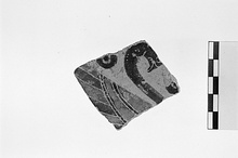 | Description: | From a large closed pot or bowl. Swan, right. Inner wing band and alternating feathers of outer wing, purple red; middle wing band cherry red. Spirals in field. Pinkish buff clay with buff slip. | |