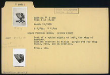 | Description: | Part of a sphinx right; at left, the wing of another. Incised rosettes in field; purple red for wing bands, ribs, and on rosettes. | |