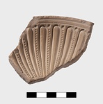 | Description: | Part of the original top of mold is preserved; broken elsewhere. The outside has two incised lines below the rim. Long petals separated by jewelled lines terminating in tiny fronds. For a bowl such as P 596. | |