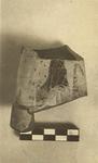 | Description: | Broken top and bottom, and much damaged by burning; the glaze much peeled. Two panels, separated by vertical stripes, one beneath each ear, of maeander alternating with saltire cross. A) Draped female figure, left, preserved shoulders to waist, carrying a scarf. Above her in the field the letters: <graphic> B) A girl, right, preserved head to waist, wearing chiton, himation and kerchief. A writing tablet(?) carried by a string, in her outstretched right hand. b) Much of the lower part found in tins, mended from several pieces. The lower parts of both figures remain, with most of the wool basket belonging to A. Lower border, maeander broken by cross-squares; then reserved and glazed bands alternating. Round bottom glazed black. All much burned and worn. | |