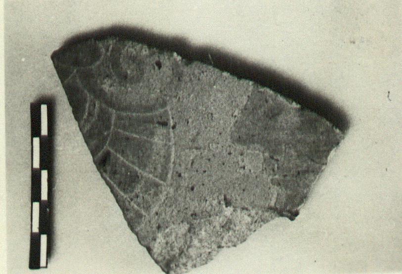 | Description: | From a large closed pot. Outside, part of large woman's face (siren?), left, facing a palmette. Buff clay, all the glaze peeled off. | |