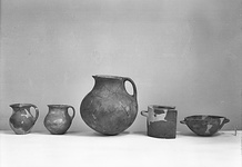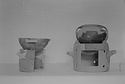| Description: | Flat bottom, plain rim, flat on top, pushed out in the center of one side to form a small spout; two horizontal handles set slightly below rim. Coarse micaceous red clay, similar to Β' 667, slipped. Cf. Agora XII, no. 1740. | |