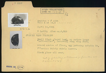 | Description: | Small black glazed bowl or large salt cellar with incurving rim, ring foot. Around center of floor, egg pattern; outside it, palmettes fairly widely spaced. Black glaze all over. Cf. P 5563 and P 5729. | |