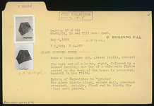 | Description: | From a large open pot, glazed inside. The back end of a horse, right, followed by a maenad dancing; one leg of a nude male figure seated on the rump of the horse is preserved. Tendril in field. Return of Hephaistos to Olympos? The glaze inside black, rather dull, somewhat streaked. Outside, fired red to black; the black much peeled. | |