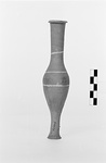 | Description: | Fusiform unguentarium with three white bands at point of greatest circumference, shoulder and base of neck. Gray clay. | |