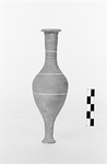 | Description: | Plump fusiform unguentarium with three white paint bands. Lip chipped. Slipped gray clay. | |