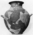 | Description: | Very fragmentary; restored in plaster. Much of side and lip missing; one horizontal handle and half of the other remain; nothing of the vertical handle. Low, false ring foot. Micaceous brown clay. Handmade. | |