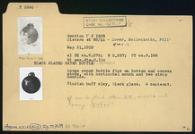 | Description: | Large round bottle flat on bottom and convex above, with horizontal mouth and two strap handles. Restored in plaster. Pinkish buff clay, black glaze. | |