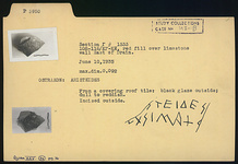| Description: | From a covering roof tile. Incised outside: <graphic> Black glaze outside, dull to reddish. | |