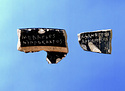 | Description: | From rim of large heavy black glazed amphora with squared rim. The top of the rim reserved. Incised inside: <graphic> | |