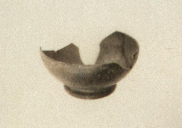 Description:   Mended from several fragments; about half of the rim and a small part of the side missing. Moulded ring foot; rounding sides.