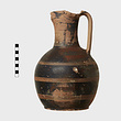 | Description: | Part of lip missing. Trefoil mouth; flat vertical handle. Ring foot. Three triple reserved bands around body. On front of neck, reserved panel with zigzag decoration. Horizontal stripes on handle. Black glaze, somewhat peeled on neck. | |