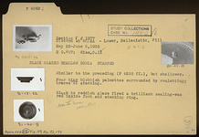 | Description: | Restored in plaster. Similar to P 6255 ff., but shallower. Four tiny blobbish palmettes surrounded by rouletting; traces of stacking. Black to reddish glaze fired a brilliant sealing wax red inside foot and stacking ring. | |