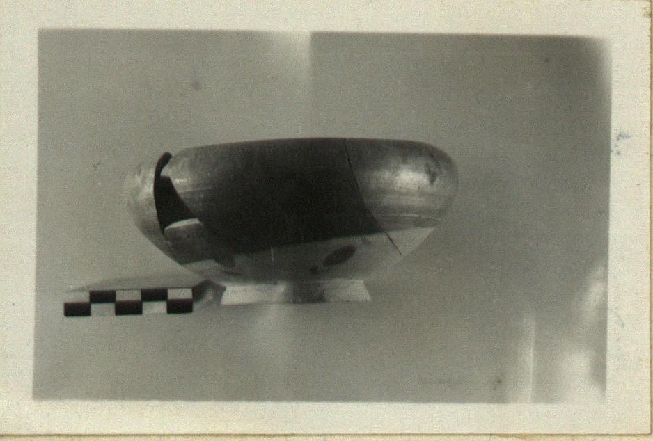 | Description: | Similar to P 6266 ff., but shallower and with body more rounded. Metallic black glaze inside and part way down body outside. ADDENDA P 6266: Ring foot. Slightly convex flaring body rounding into inward-turned rim. | |