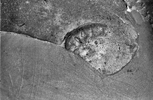 | Description: | About half preserved but with neither of the handles. Partly restored in plaster. Ring foot; incised groove around body just above foot. Shallow floor, straight rim. The handles should be of the horizontal pressed back type. Cf. P 602-P 604. Four stamped palmettes and rouletting at center of floor. Glaze black to red. | |