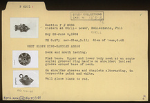 | Description: | Neck and mouth lacking. Flat base. Upper and lower body meet at an acute angle; grooved ring handle on shoulder; incised groove around base of neck. On shoulder sheaves and chaplets alternating, in terracotta paint and white. Dull glaze black to red. | |