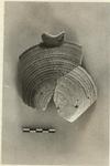 | Description: | Shallow bowl with flat bottom, flaring wall and slightly thickened rim. Ribbon handles at rim. Outside covered with narrow bands; vertical strokes below rim. On bottom, spoked wheel surrounded by bands and strokes. Black glaze much peeled. | |