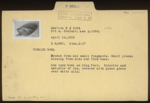 | Description: | Mended from six small fragments. Small pieces missing from side and from base. Low open bowl on ring foot. Interior and exterior of rim, covered with green glaze over white slip. | |