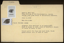 | Description: | Fragment from the shoulder of an amphora. Head of satyr to left, with an uncertain object in field in front of him. Purple paint for face and headband; black glaze around root of neck of vase. | |