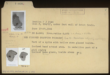 Description:   Part of a cup with hollow stem glazed inside. Incised band around stem. In medallion part of a girl right(?).