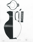 | Description: | Broken and mended, but complete. Ring foot, trefoil mouth, and vertical band handle. On handle, horizontal bands. Entirely covered with metallic black glaze, except for reserved band at point of greatest circumference filled with two narrow bands above and below a thinned glaze zigzag drawn from right to left; half way up neck, the same: one band above and below zigzag. The glaze somewhat peeled. | |