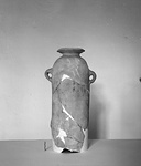 Description:   Bottom missing. Cylindrical body with round shoulder, narrow short neck and flaring mouth. Two vertical loop handles, grooved.