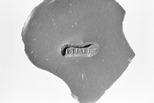 | Description: | The floor of a small pot; the foot broken off. Foot-shaped stamp: <graphic> Very thin fabric. Western Sigillata. | |