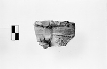 | Description: | A piece smilar to P 6820 (ΚΚ 122). From a cup. The handle broken; garlands tied with bows in relief. Brown glaze inside; outside, green to dark blue. Lead Glazed Ware. | |