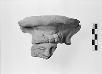 | Description: | From a situla. Part of head in relief. Dionysos(?) crowned with garland. Above, two round objects broken off: handles(?). Pinkish-buff clay with buff surface; unglazed. Probably projecting edge from side of pot. | |