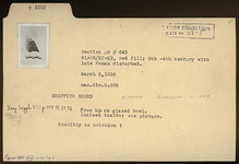 | Description: | From a black glazed bowl. Probably an ostrakon. Incised inside. | |