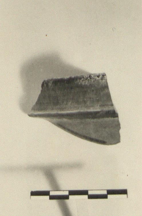 | Description: | From a small bowl with keeled rim. Greenish-buff clay; vitreous green glaze. Lead Glaze Ware. | |