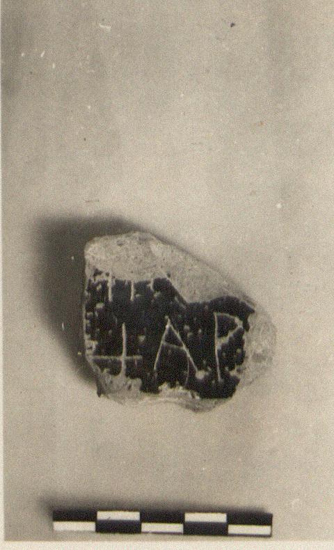 | Description: | Two non-contiguous fragments of a coarse krater, glazed black inside. Fragments of nine letters: <graphic> | |