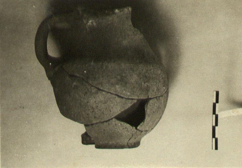 | Description: | Much of lip and side walls missing. Restored in plaster. Shape very like P 7228 (ΗΗ 184), but there is a marked break at the shoulder, and the foot is less carefully profiled. Handmade of coarse clay, brown to reddish, full of mica and pebbles. ADDENDA P 7228: Trefoil mouth, small vertical handle, flush with rim. Profile one continuous curve from lip to low foot ring, without break at neck or shoulder. | |