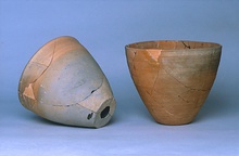| Description: | Mended from many pieces; a few fragments missing from rim and walls, restored in plaster. Pinkish-buff clay. | |