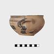 | Description: | About one-third of rim and body preserved with part of one handle; none of the base. Restored in plaster. Two handles, tilted slightly up. Glazed to handle zone, with reserved band. In handle zone, triple band. Rim glazed, with two fine reserved bands. Reserved band inside rim, and another inside, well down. Streaky black glaze. | |