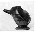 | Description: | Front part and base preserved, with a spout. Low conical base, flaring; sharply flaring walls; narrow inturned rim; open top; small tapering spout; handle (broken off) at right angles to spout. Glaze black to red, somewhat peeled. Base reserved at edge and beneath; washed with pink. ADDENDA Handle seems to have been horizontal, like a skyphos handle, with the handle space reserved and washed with pink. | |