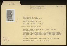 | Description: | Nearly flat; if from a pot, then from an extremely large one. Ridges; one ornamented with incised diagonals to make a cable pattern, the other with impressed circles. Impressed circles in rows between ridges. Coarse gritty red clay; brownish slip on the decorated side. Cf. P 7449-P 7451. | |