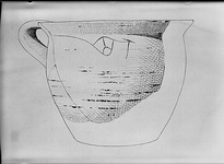 | Description: | Fragment of body and rim, with one handle. Cup with very low rim and two horizontal handles with out-turned ends set at point of greatest circumference. Bands to handle zone; in handle zone, vertical bands and a procession of birds to right. Bands on rim; glazed inside. | |