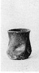 Description:   Deep flat-bottomed handleless small pot; four indentations in the walls.