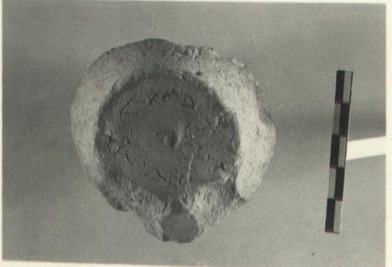| Description: | Massive sharply-profiled foot. Scratched in the underside while clay still soft: <graphic> Cf. Stamped similar toes: SS 9463, SS 9637. | |