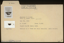 | Description: | Similar to P 7808 but much smaller; salt cellar. ADDENDA P 7808: Plain bowl with ring foot and sharply inturned rim. | |
