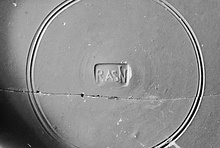 Stamped at the center inside, within a double grooved circle: <graphic>