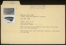 | Description: | From the rim of an amphora with half-round rim and rosettes beneath. Soft pink clay; buff surface; traces of red glaze on the rim. | |