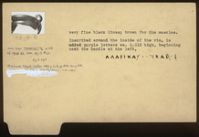 Inscribed around the inside of the rim, in added purple letters, beginning next to the handle to the left: <graphic>