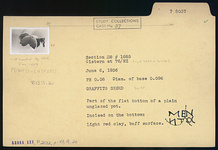 | Description: | Part of the flat bottom of a plain unglazed pot. Incised on the bottom: <graphic> Light red clay, buff surface. | |