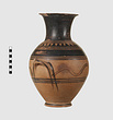 Notes:   Other pots from this grave are P 6695-P 6704 (ΠΘ 280-ΠΘ 289), heavily burned with much carbonized matter but no bones.