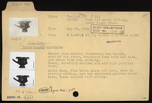 | References: | Publication: Agora XII Publication: Agora XXXI Publication Page: Agora 12.2, s. 27, p. 400 Drawing: PD 1190-1c (DA 7961) Object: Agora XII, no. 663 Deposit: H 17:5 Card: P 820 |