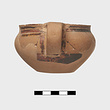 | Description: | Bottom, and the one vertical handle, broken away; restored in plaster. Glazed to the handle zone, which is reserved. Horizontal bands on rim; handle panel set off by vertical bands. | |