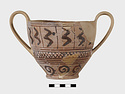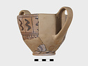 | Description: | Mended from many fragments; handles, most of one side and pieces from the other missing. Restored in plaster. Ring foot. Large reversed Σ pattern around upper part; below this, a diamond chain; around the base, curled up spirals; the decorative bands set off from each other by groups of narrow horizontal stripes; similar vertical stripes interrupt the pattern to form plain panels beneath the handles. Buff clay. Decoration, and inside, painted in dull brown glaze. For motifs, cf. Protocorinthian vases; Johansen (1923), Les vases sicyoniens, pl. XIX, 3. Early Orientalizing style. | |