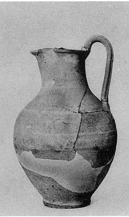 Description:   Ring foot; trefoil mouth and grooved handle.